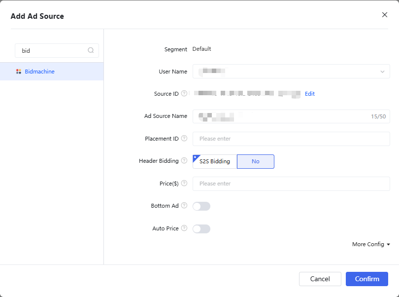 - Select BidMachine from the available ad sources